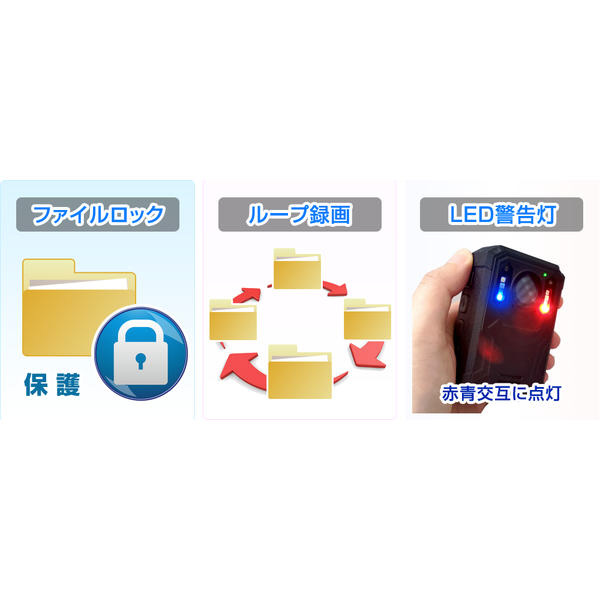 ファイル容量が満杯になると自動で古いファイルから上書き録画を行うループ録画機能も搭載。