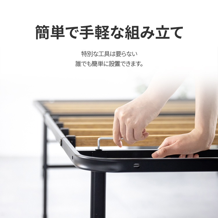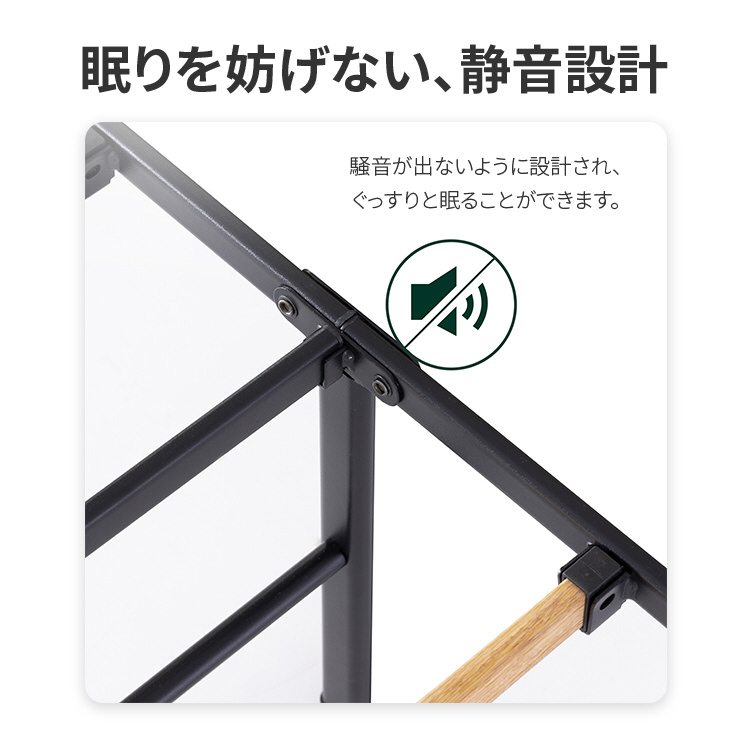 耐久性に優れたスチール製フレームが、マットレスをしっかり支え、安定した快適な寝心地を実現します