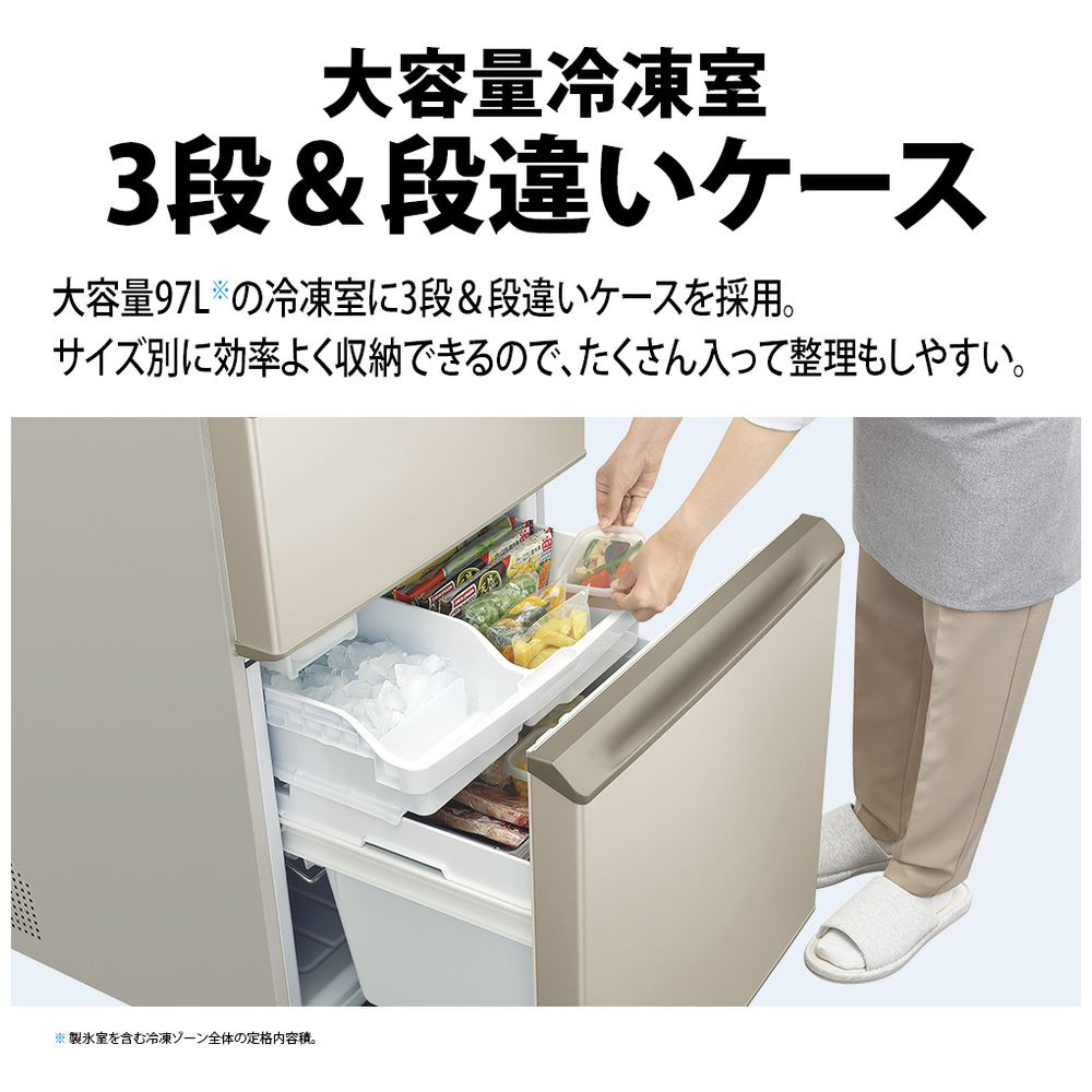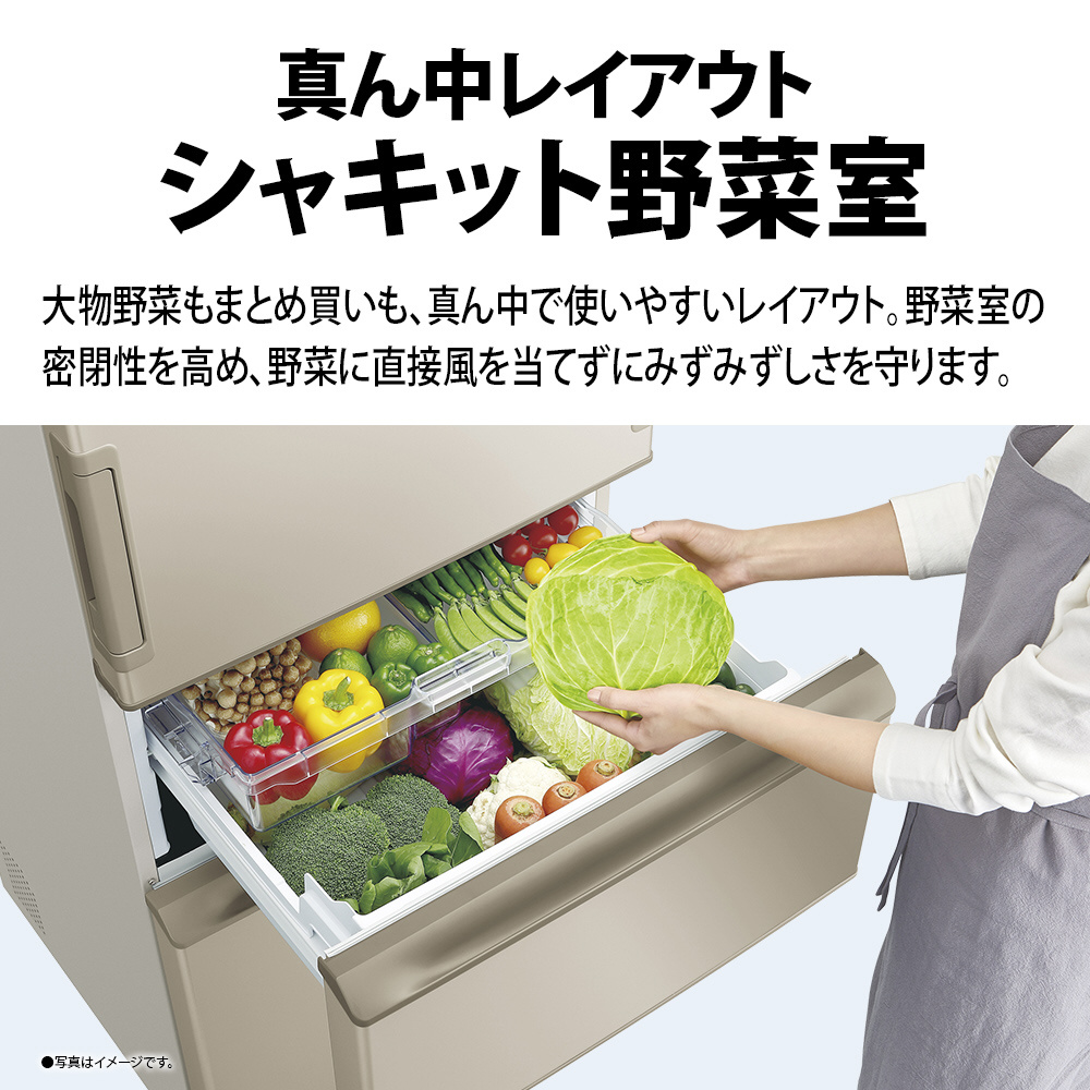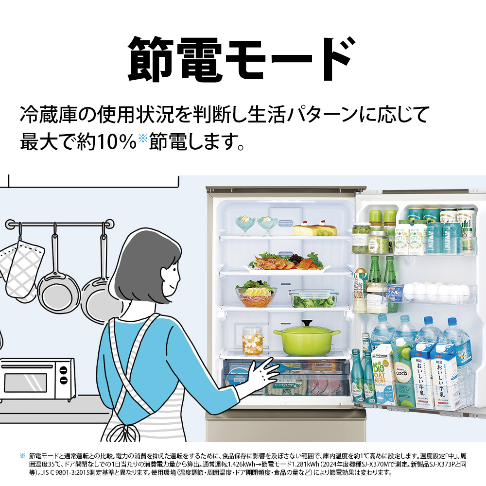 冷蔵庫 マットシャンパン SJ-X373P-N [60cm /374L /3ドア /左右開きタイプ]
