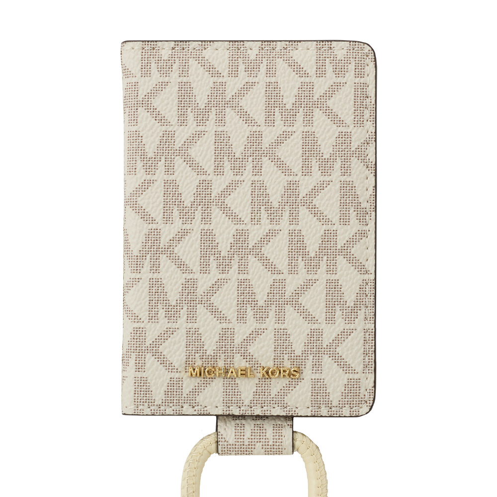 MICHAEK KORSのシグネチャーロゴが調和するスマホケースとカードウォレットのセットアイテム。