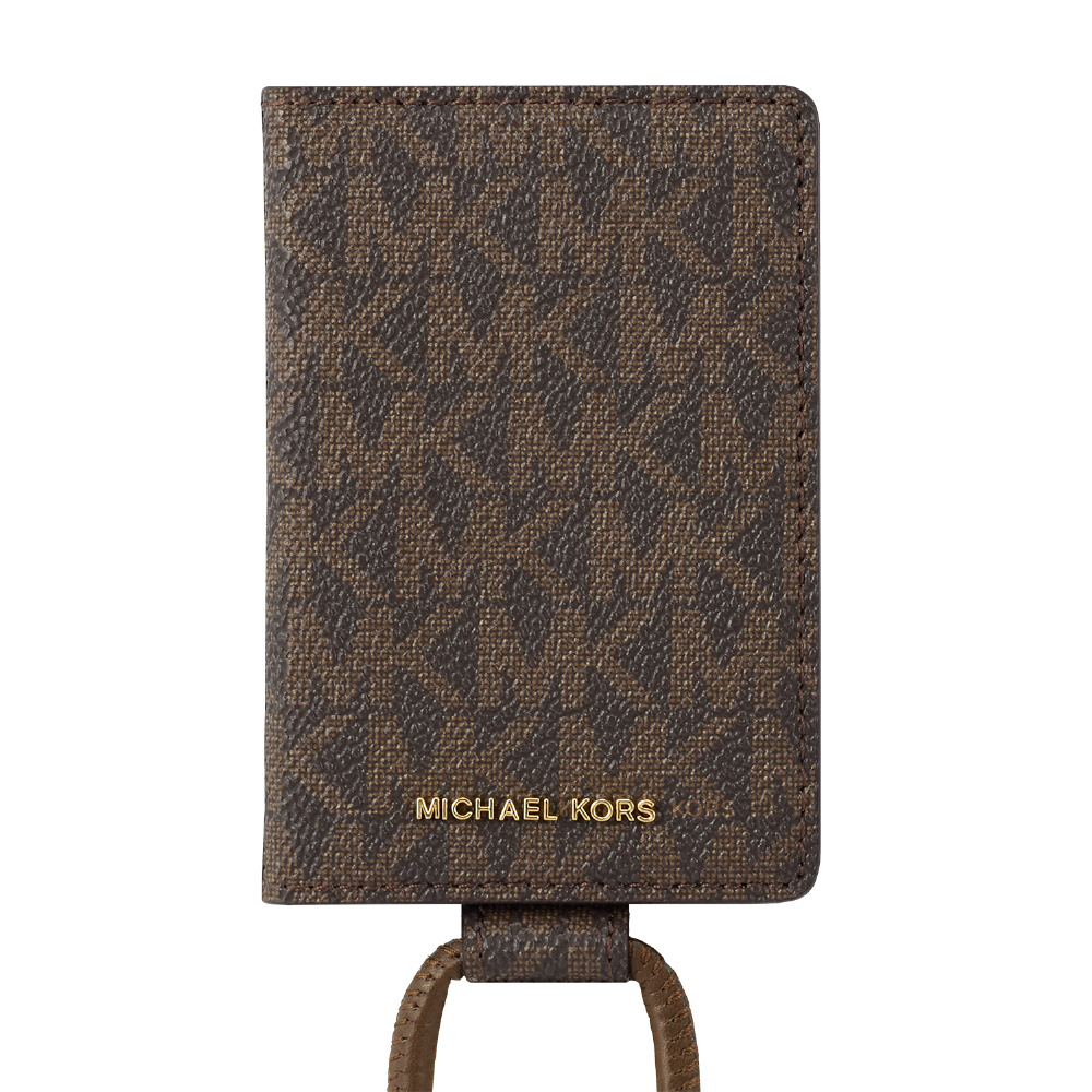 MICHAEK KORSのシグネチャーロゴが調和するスマホケースとカードウォレットのセットアイテム。