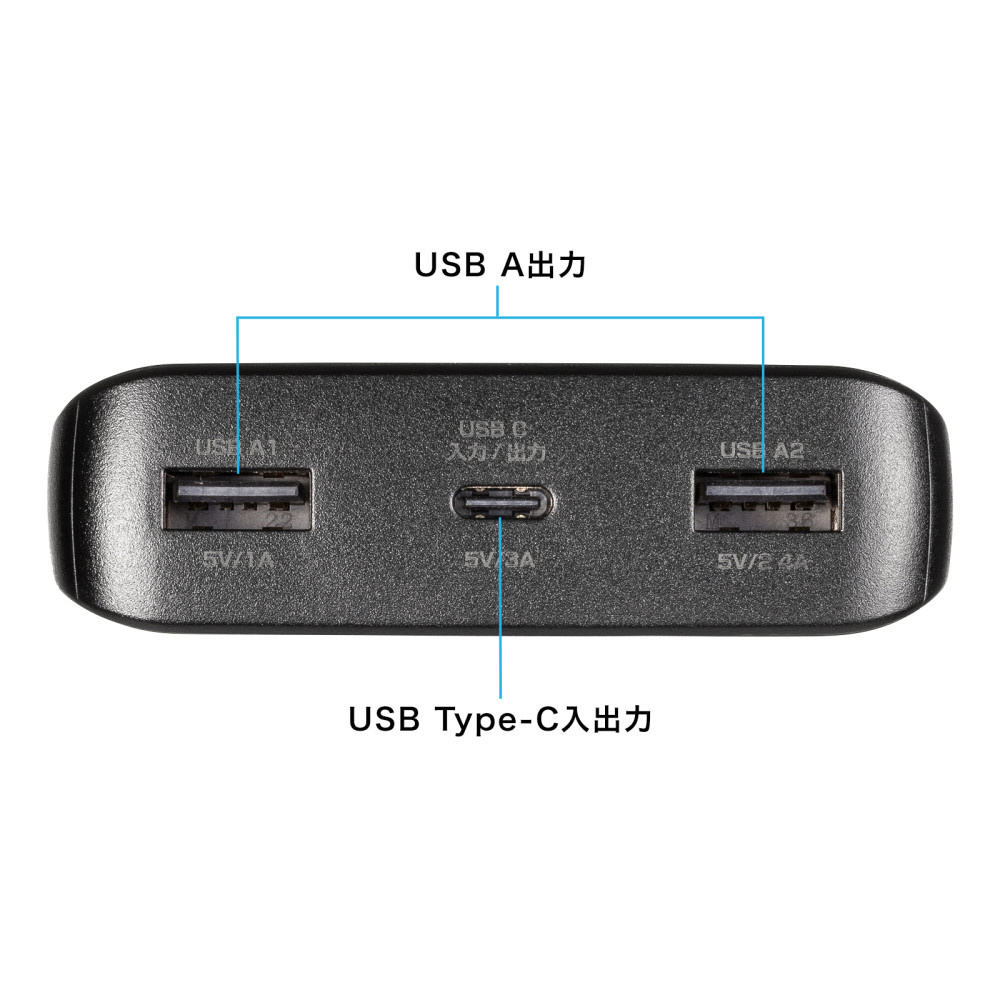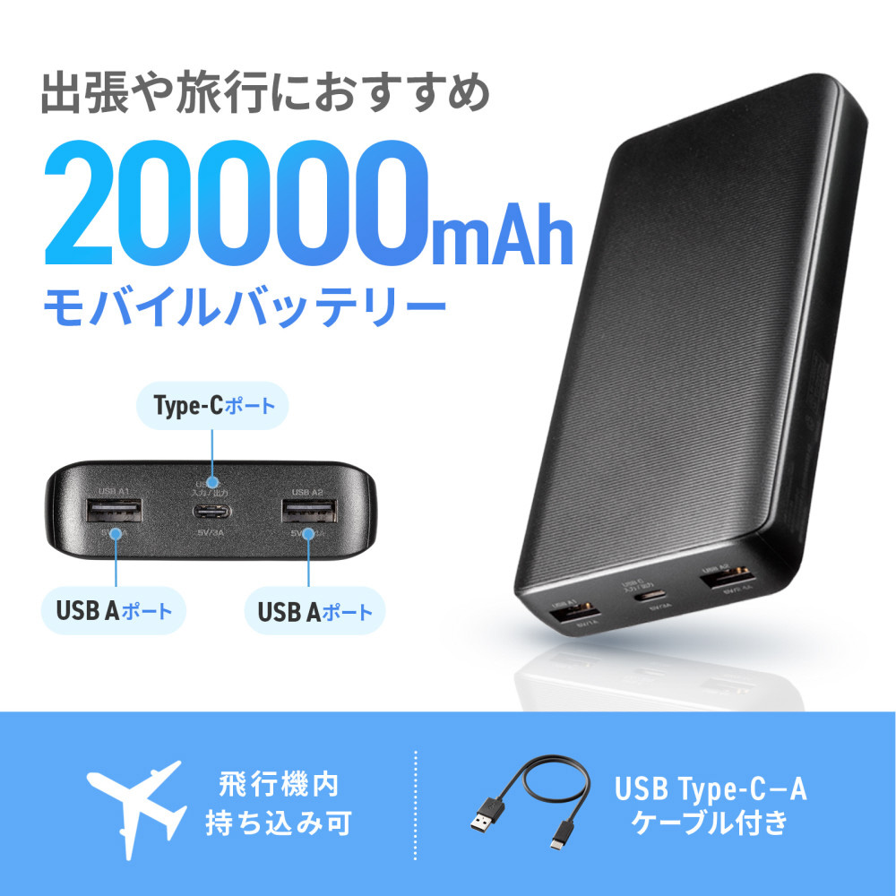 20000mAhの大容量で泊まりの外出も安心。3ポート出力可能なUSB Type-Cポート搭載のモバイルバッテリー。