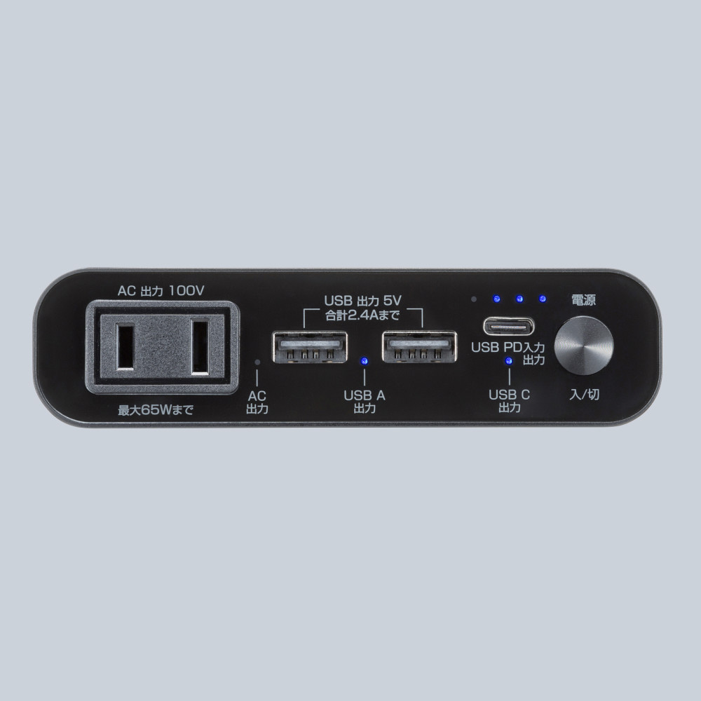 ●ACコンセントプラグを直接挿せる、最大65Wまで対応のAC出力ポートを搭載したモバイルバッテリーでノートパソコンへの給電に最適です。
