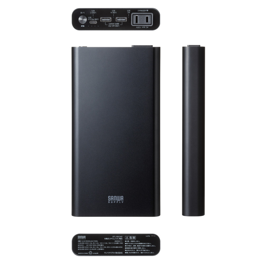 モバイルバッテリー 大容量 AC出力65Wポート搭載 PD45W USB-C入力/出力 USB A出力×2 ノートPCへ電源供給可能 (20000mAh・AC65W・PD45W) BTL-RDC42