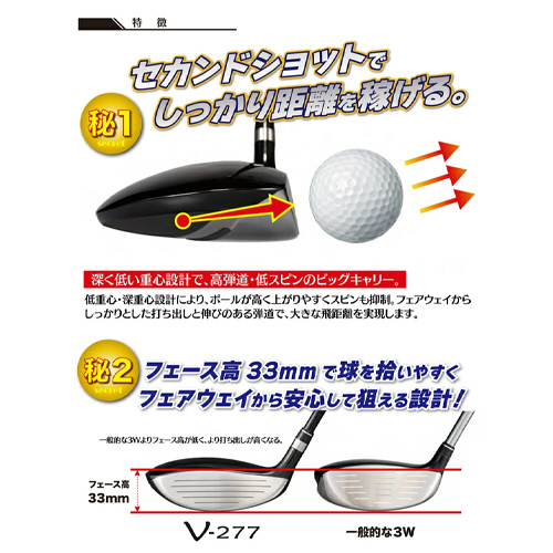 フェース高33mm で球を拾いやすくフェアウェイから安心して狙える設計!
