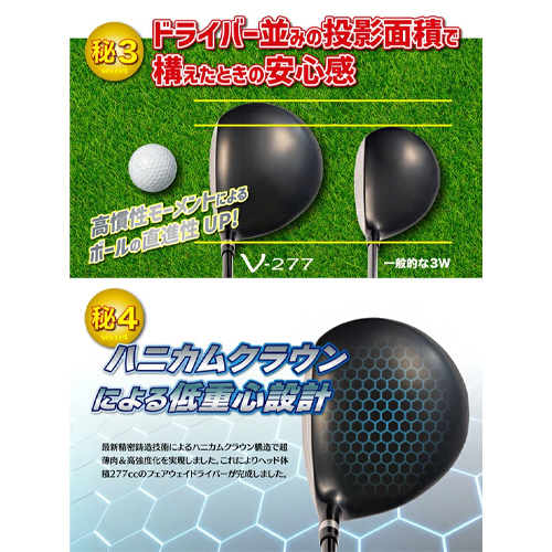 最新精密鋳造技術によるハニカムクラウン構造で超薄肉&高強度化を実現しました。これによりヘッド体積277ccのフェアウェイドライバーが完成しました。