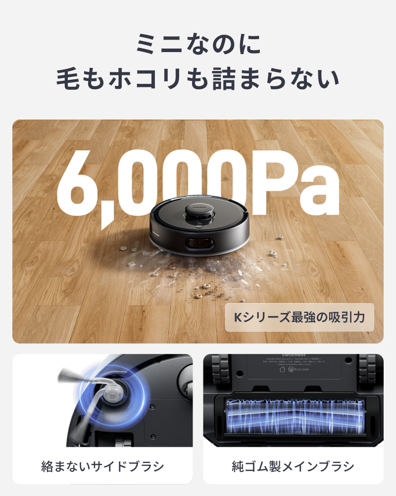 ・本体サイズがK10+と同じで、吸引力は6000Pa