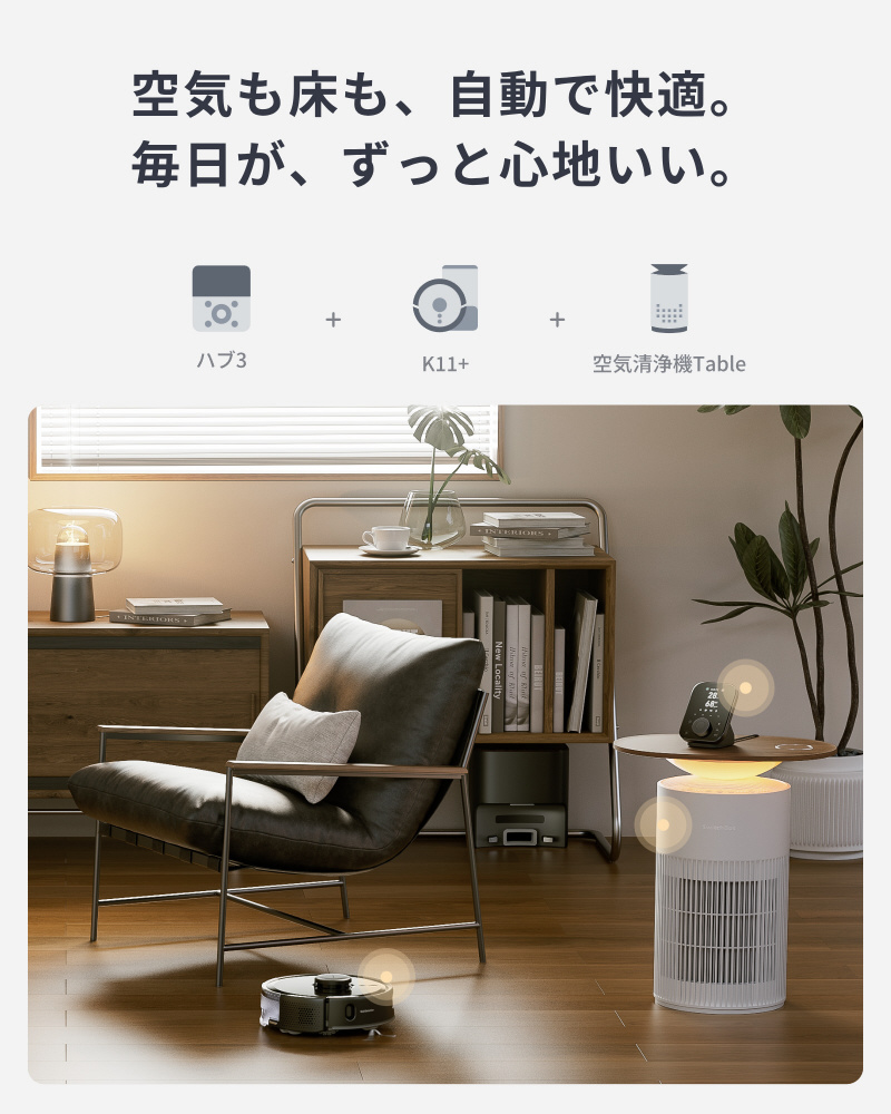 付属品 K11+本体x1 ゴミ収集ステーション(電源コード付き)x1 モップ取付パッドx1 お掃除シート30枚セットx1 サイドブラシx2 フィルターx1 紙パックx1 メンテナンスツールx1 取付説明書x1