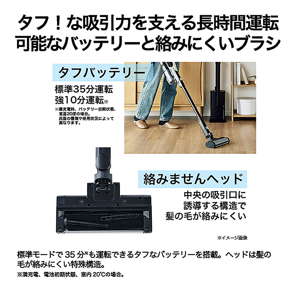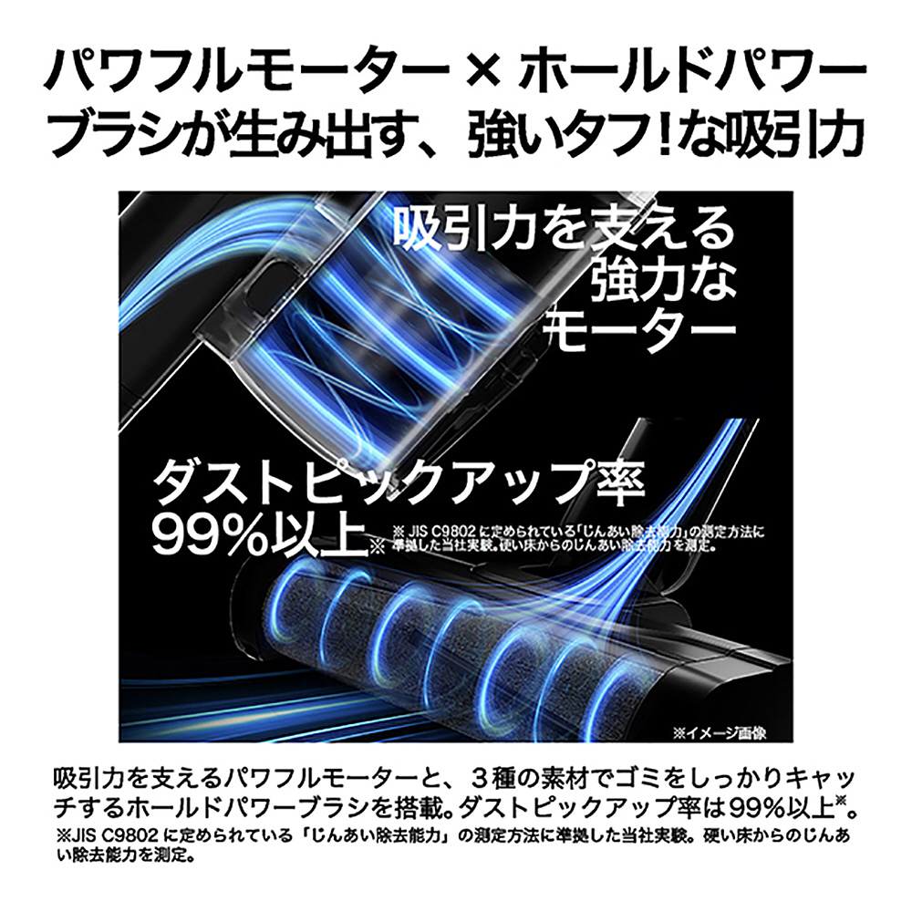 パワフルモーター×ホールドパワーブラシが生み出す、強いタフ!な吸引力