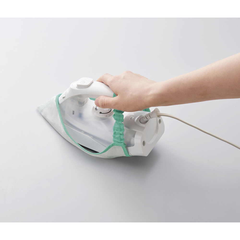 (3)ハンドルとゴムを持ち、アイロンと本品がずれないように確認しながら使用してください。衣類をおさえながら一方向にアイロンがけをしてください。