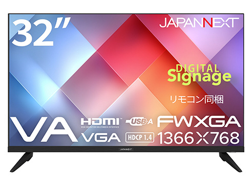 「32インチ VAパネル搭載 FWXGA(1366x768)解像度 液晶モニター JN-V32FW-M HDMI VGA USBメモリ再生対応 サイネージ リモコン同梱 【2年保証】」