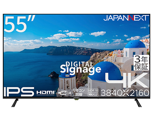「【3年保証モデル】 55インチ IPSパネル搭載 4K(3840x2160)解像度 大型液晶モニター HDMI ビデオ音声入力 コンポーネント入力 オプティカル音声出力 USBメモリ再生対応 リモコン同梱 簡易サイネージ」