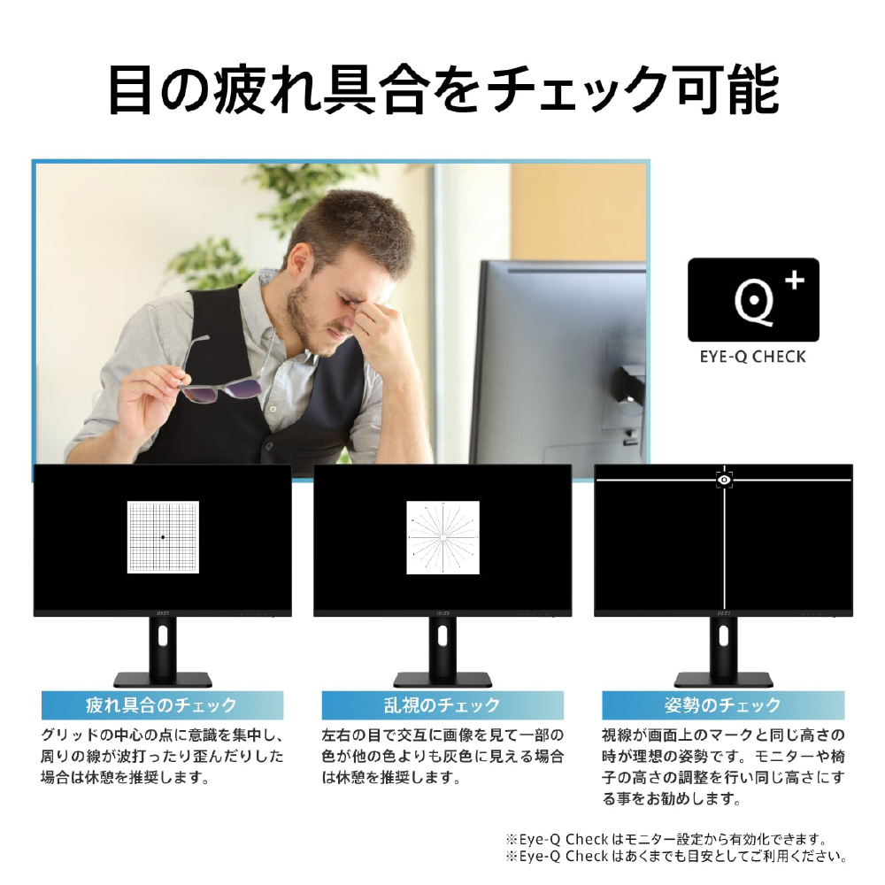 アンチフリッカー技術とブルーライトカット技術により、長時間の使用でも安心してご使用いただけます。