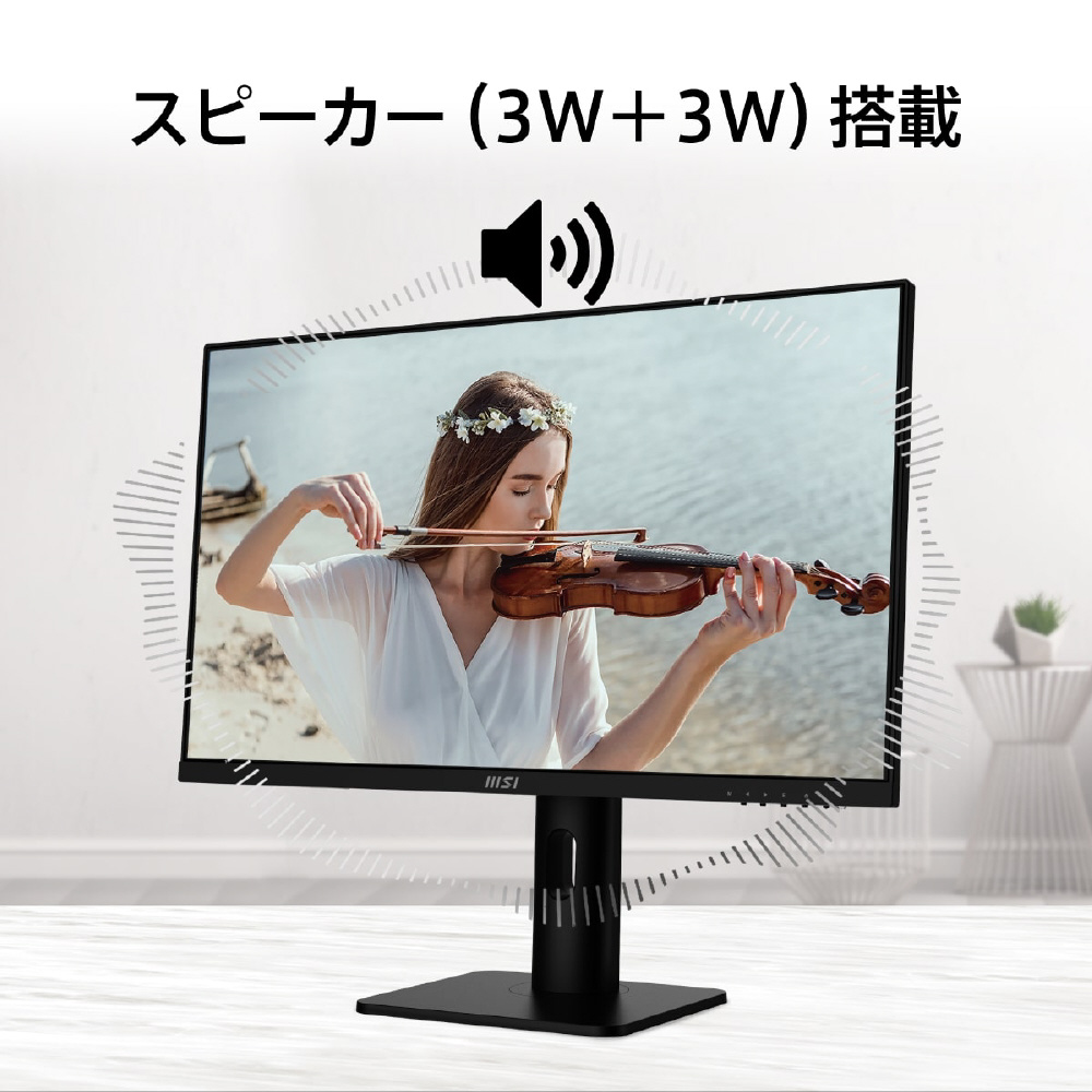 スピーカ機能をモニターに内蔵しており、別途スピーカーを用意する手間が省け机の上のスペースを有効活用できます。