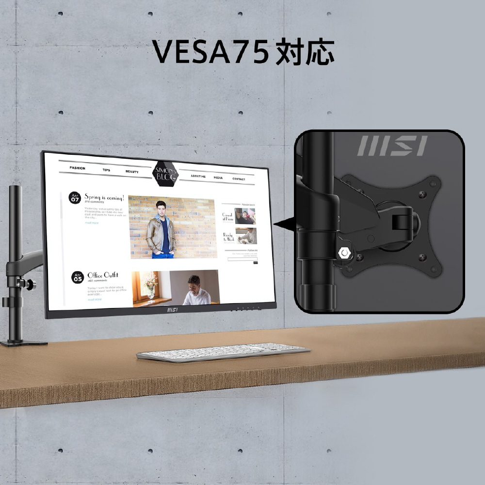 モニターアーム取り付けにより、デスク上のスペースを節約することができます。テレワーク等のスペースが限られている場合にも最適です。