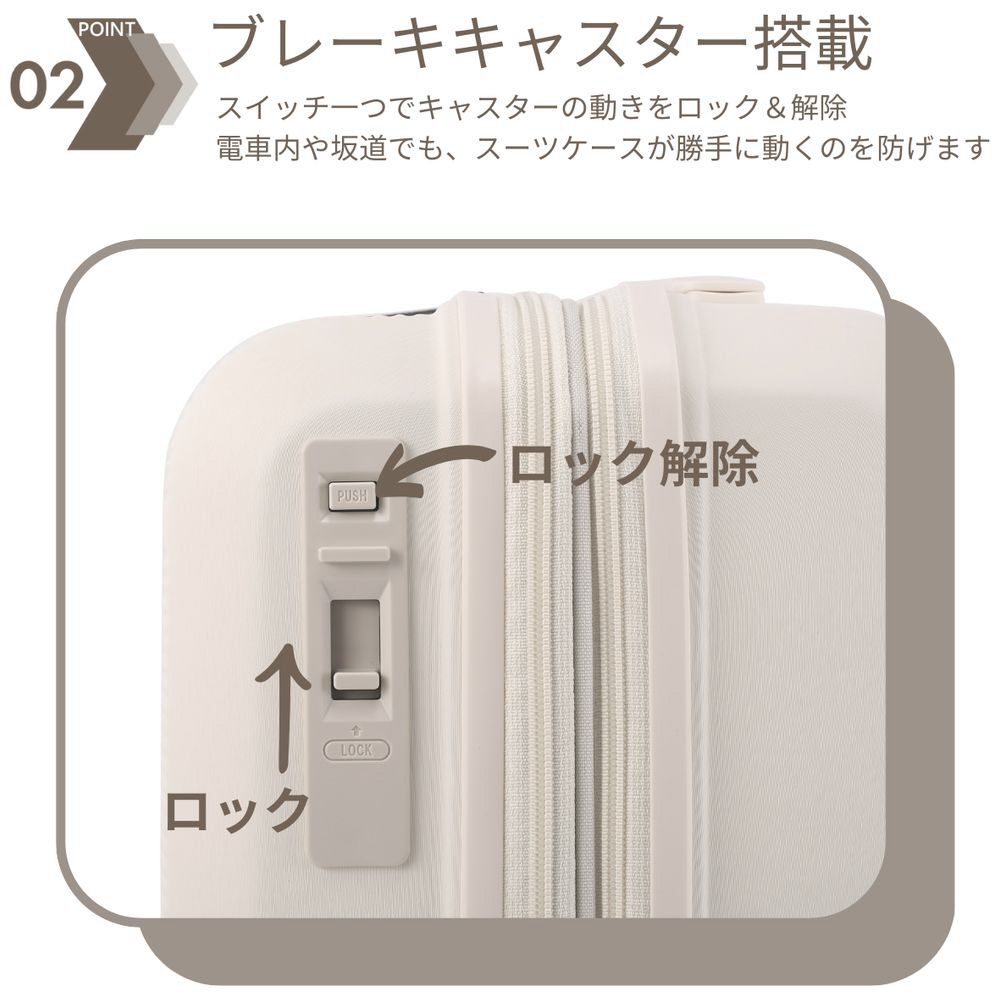 K2ブレーキ キャスターストッパー搭載 スーツケース Sサイズ 40L(47L)|機内持ち込み・軽量・拡張機能付き