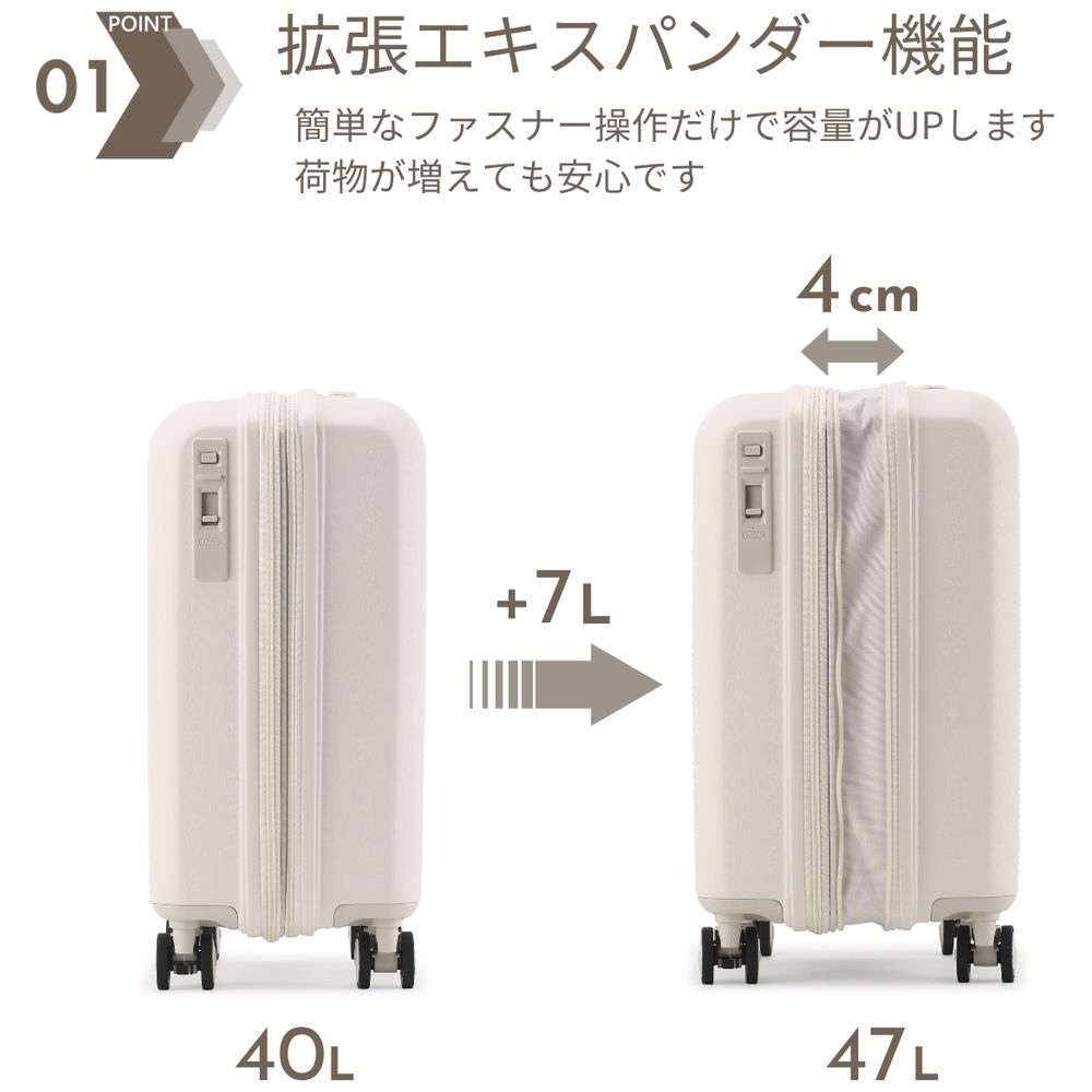 K2ブレーキ キャスターストッパー搭載 スーツケース Sサイズ 40L(47L)|機内持ち込み・軽量・拡張機能付き