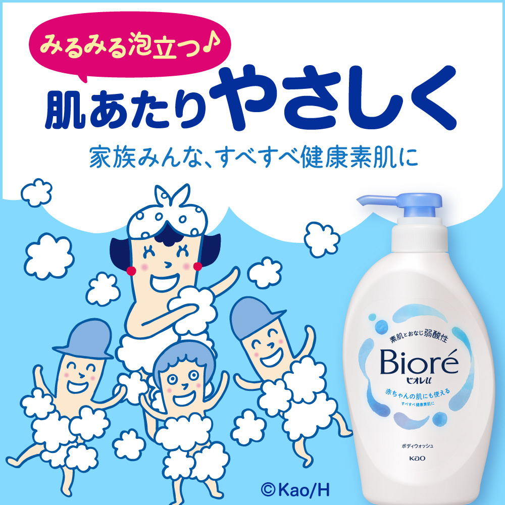 みるみる泡立ち、肌あたりやさしく洗える家族の肌想いなボディウォッシュ。肌への刺激の一因となる汚れを落として、肌本来のうるおいは守って洗い、家族みんな、すべすべ健康素肌に。●素肌とおなじ弱酸性●赤ちゃんの肌にも使える●やさしいフレッシュフローラルの香り【微香性】