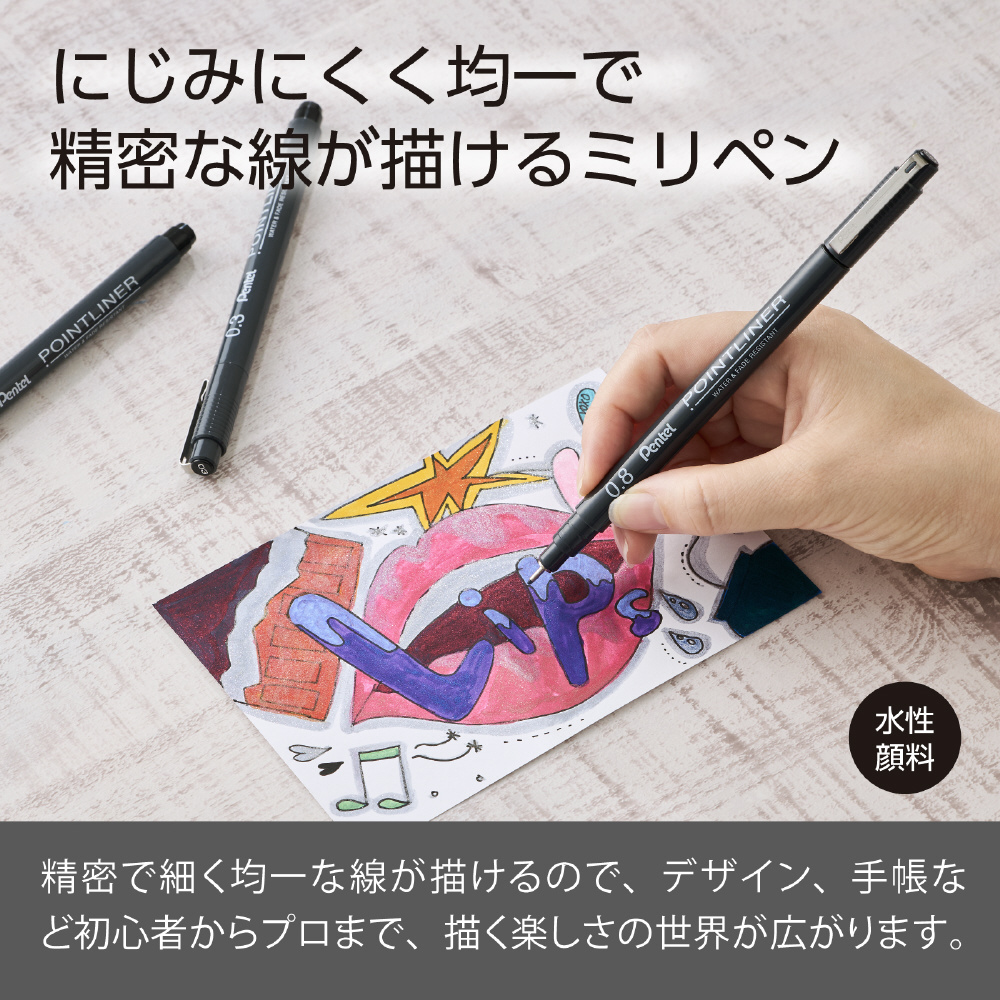 にじみにくく、精密な表現に適しており、イラストや手帳、デザインなど幅広く活躍します。