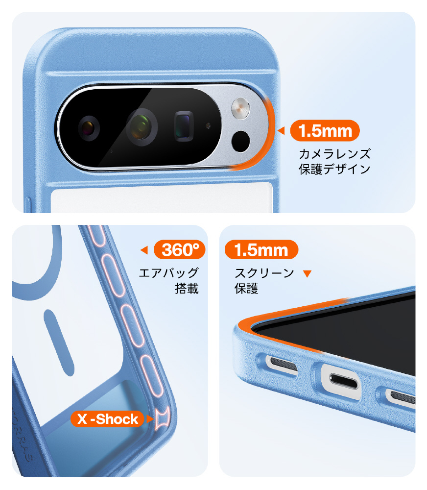 ・2.44m落下防止性能:フレーム部分の強化保護デザインで2倍のMIL耐衝撃性能