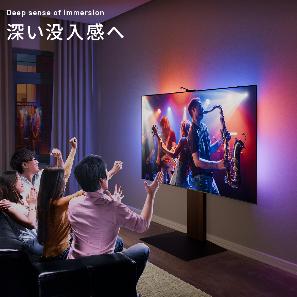 映画・ライブ・ゲーム・スポーツの映像にシンクロし同調した光がお部屋に広がる拡張型LEDライト。使用することでより映像に没入できる空間に変わります。テレビ背面に掛けるだけで簡単に設置可能。43〜48インチテレビ対応。