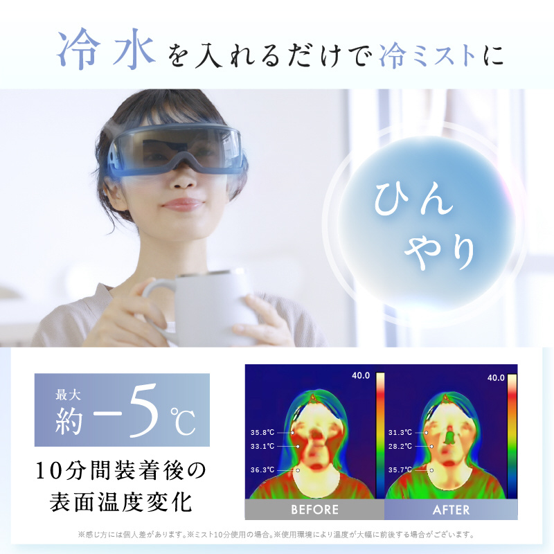 ミストでクールダウン。季節や気分によって5分間または10分間を選べる。