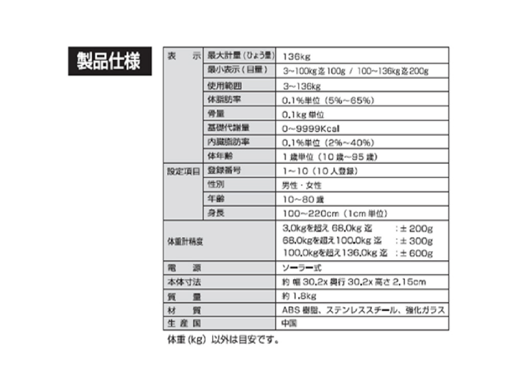 乾電池不要のソーラー電池式 体重体組成計 ※充電式ではありません