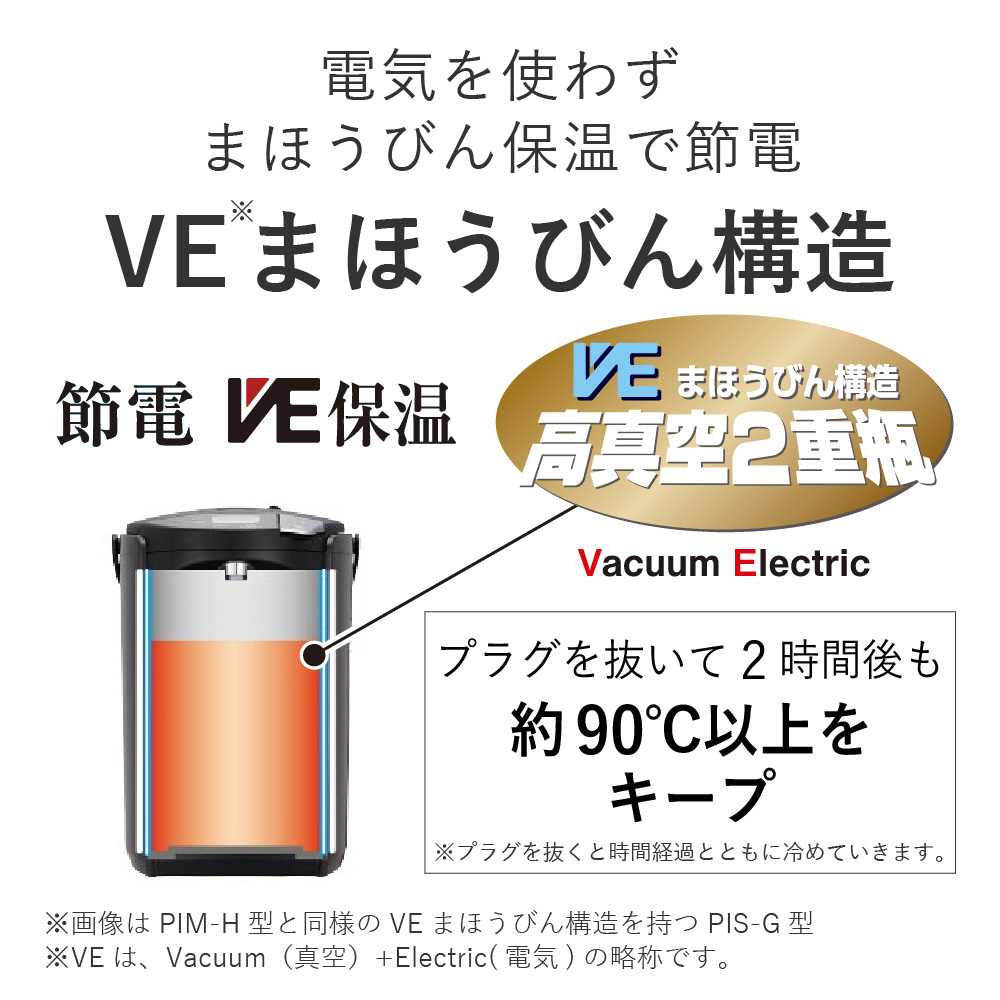 電気ポット 蒸気レスVE電気まほうびん アーバンブラック PIM-H220KE [2.2L /蒸気レス機能つき]