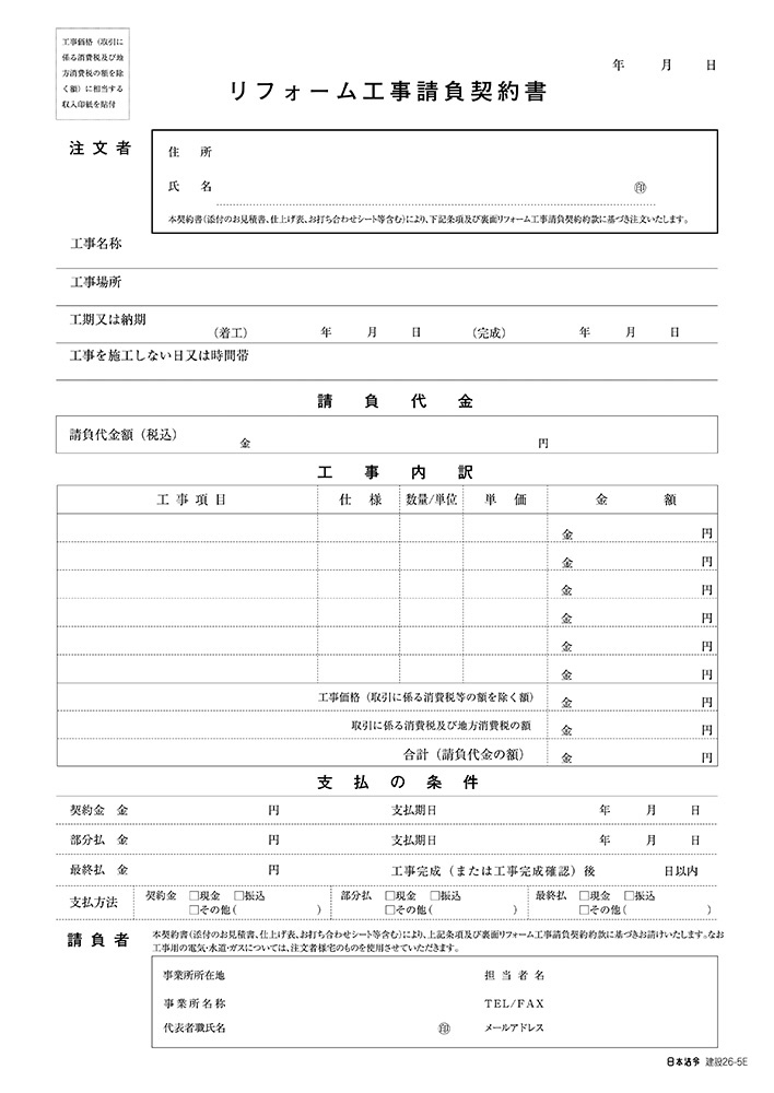 リフォーム工事請負契約書(ノーカーボン2枚複写) 26-5E