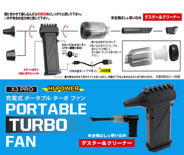 リバーシブルで吹き飛ばし、吸い込みが選択できます。