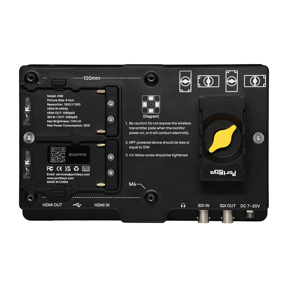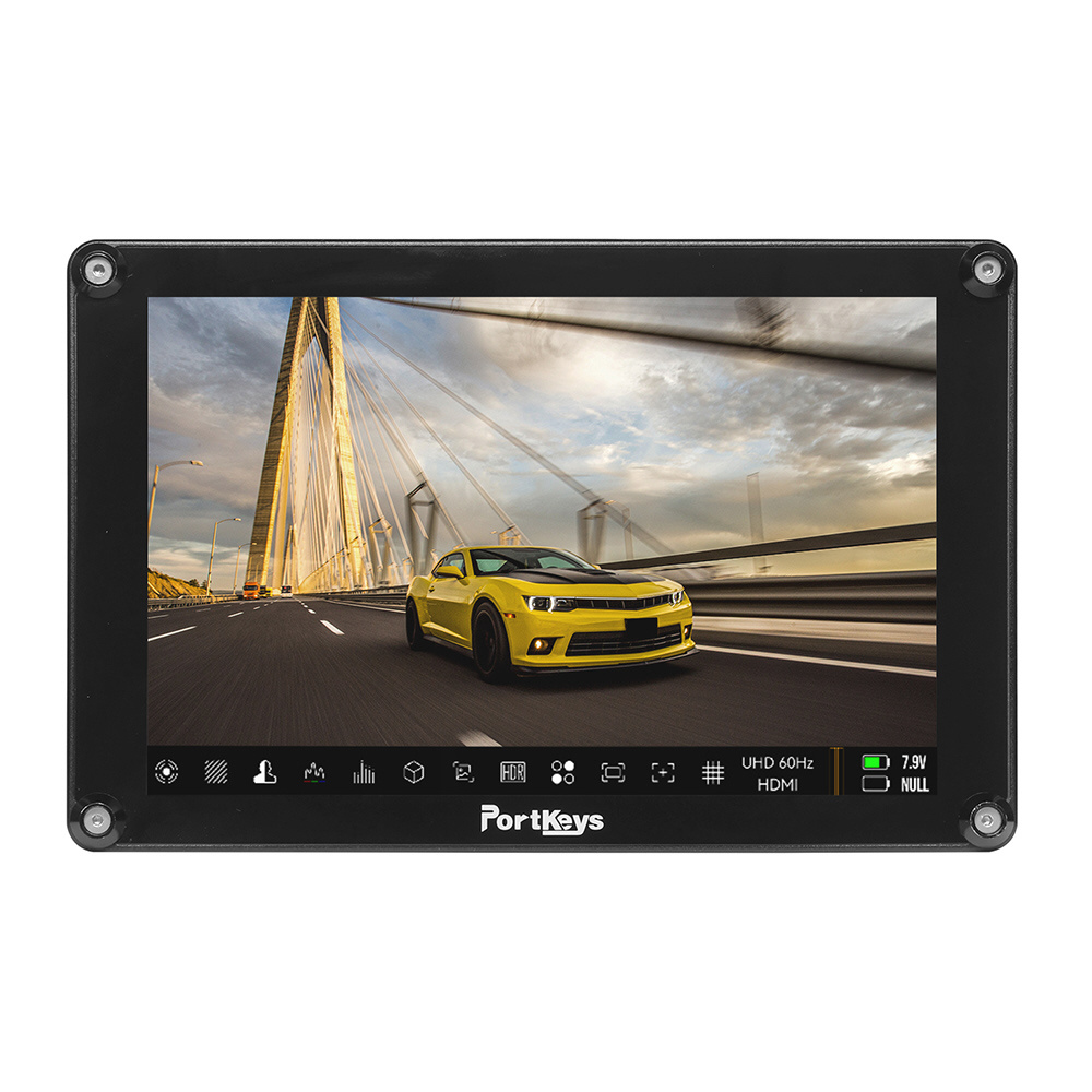 ●画面サイズ:8インチ●本体サイズ:208×133.7×50.5mm●重量:675g●視野角:178°(水平・垂直)●輝度:1100nit●解像度:1920×1200pixel●コントラスト比:1000:1●色深度:10ビット(8ビット+2FRC)●素材:アルミ合金●入力電圧:DC 7〜20V●対応バッテリーモデル:NP-F550/NP-F750/NP-F970●最大消費電力:20W●ビデオ信号入力:3G SDI、4K 60p HDMI●ビデオ信号出力:3G SDI、HDMI●ヘッドホン端子:3極3.5mm●信号変換:HDMI/SDI相互変換●USB-A:ファームウェアアップグレード / LUTロード対応●FAN:あり●OS:Portkeys OS