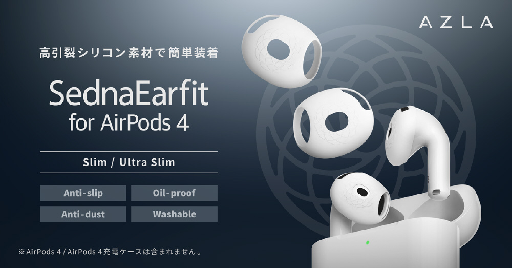 『SednaEarfit for AirPods 4』は、Apple社製のカナル型ではない完全ワイヤレスイヤホン「AirPods 4」用に開発したスリーブタイプのイヤーピースです。皮脂や汚れに強く、洗うことも可能で清潔に使え、適度な摩擦力があるAZLAならではのプレミアムな素材を採用しています。素材や形状、実際の使用感まで徹底した研究を行い、AirPods 4の持つポテンシャルを最大限引き出しつつ、長時間装着や落下などの問題に対しフィッティング面でさらにサポートします。