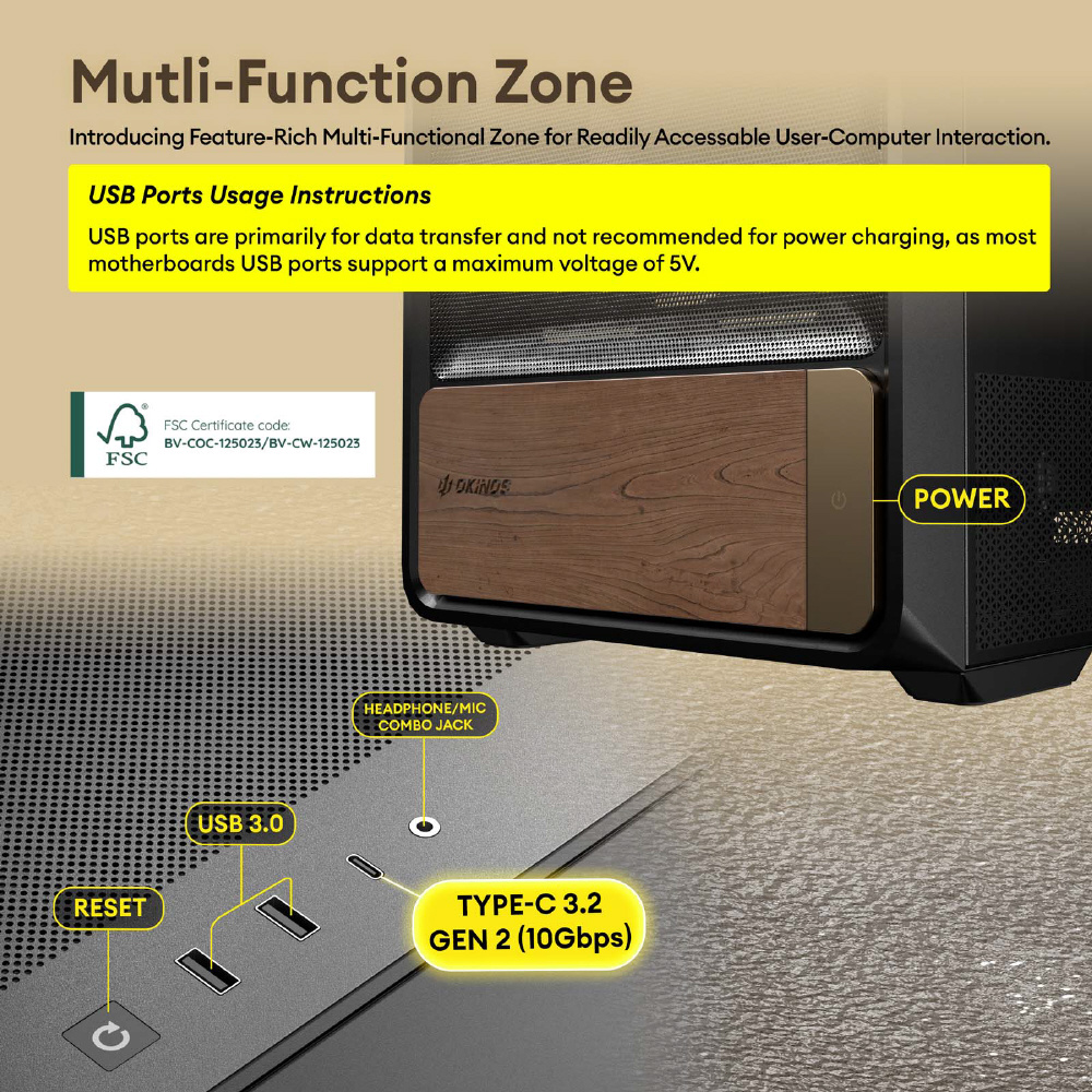 本物のウォルナット材を使用した温かみのある外観に、USB 3.2 Gen2 Type-Cなど最新のインターフェースを備えています。