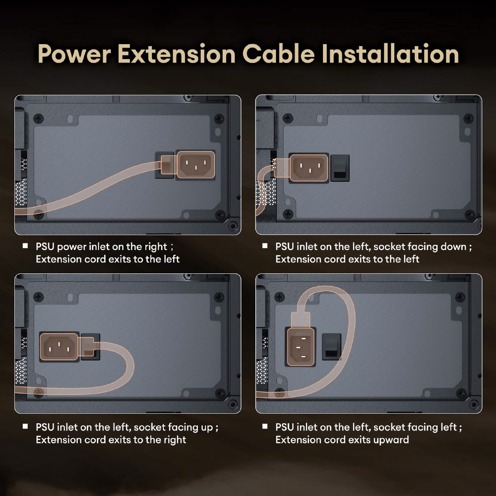 450 mm長で最大1300 Wの出力に対応するPSU延長ケーブルを搭載し、ACケーブル差込口の配置が異なる場合も問題なく接続することが可能です。