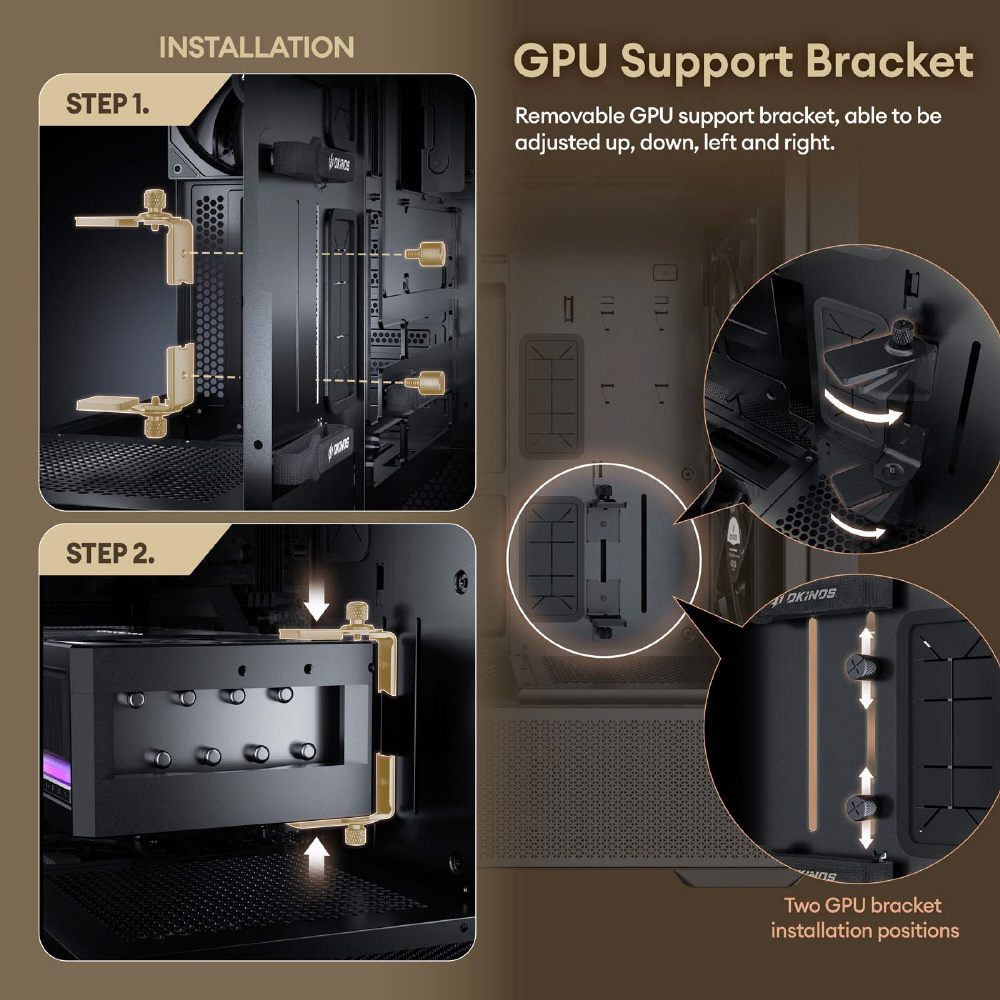 大型のグラフィックカードの重量を支えるサポートブラケットが付属しています。
