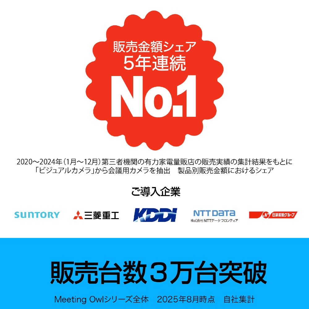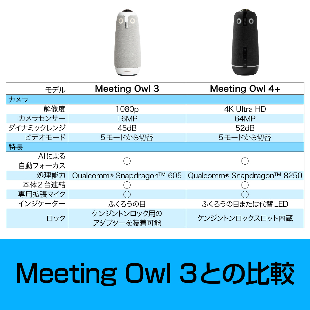 「Meeting Owl 4+」は、会議室用360度webカメラの新モデルです。360度カメラとAIによる自動フォーカス機能により、まるでその場にいるかのようなweb会議を実現します。