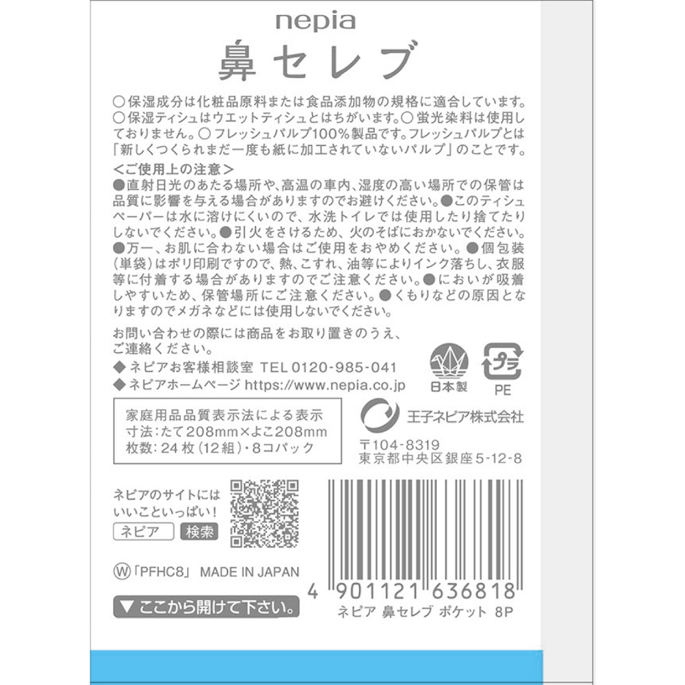 ネピア 鼻セレブポケットティシュ24枚(12組)8個パック