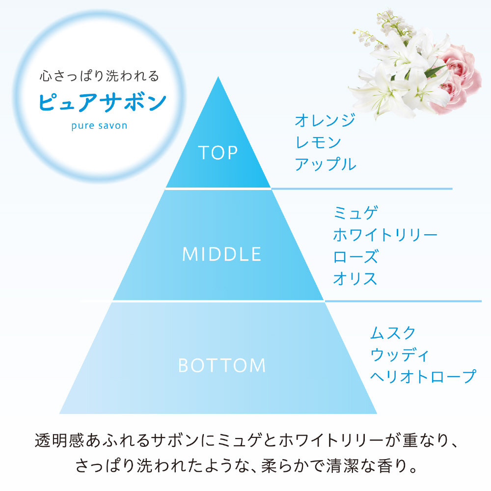 ●みずみずしい香りが自然に残る、香り長続き※設計です。