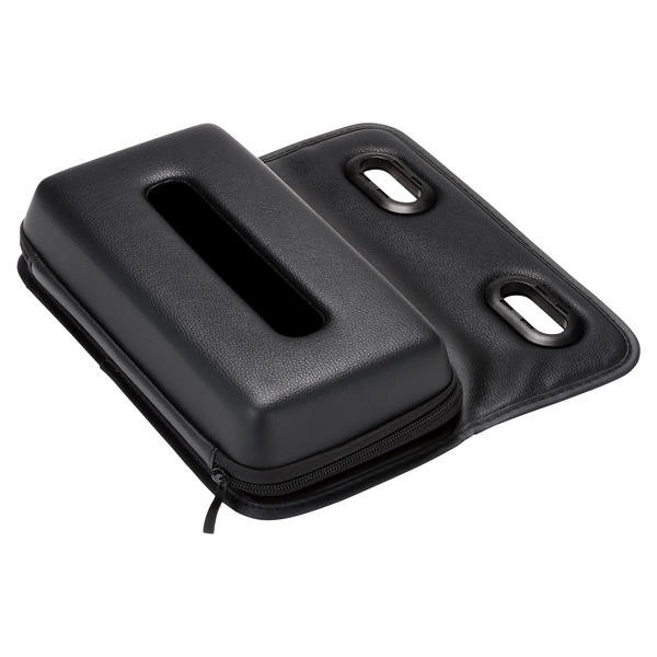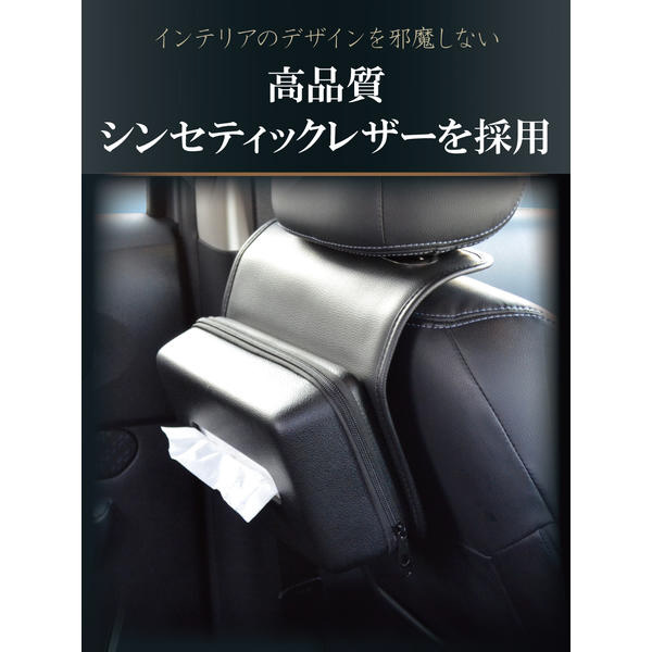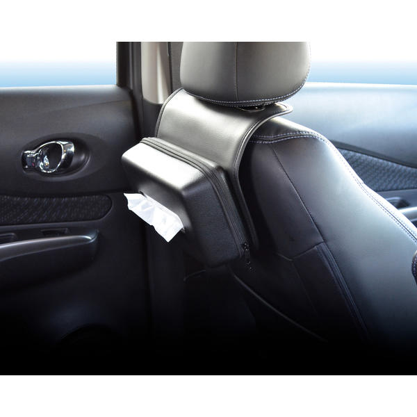 ヘッドレストに取付けるセミハードタイプのティッシュケースです。