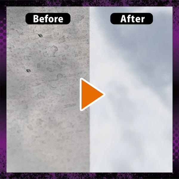 ガンコなウロコ汚れや油膜、劣化したコート剤を軽く擦るだけで簡単に落とせる外側ガラス専用クリーナーです。