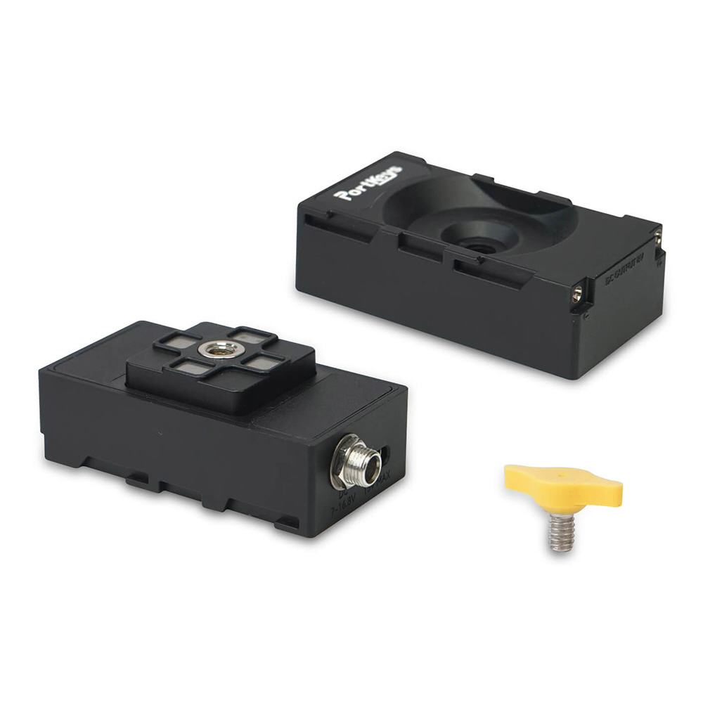 NP-F互換の直接接続モジュールと、モニターや伝送システムで使用するために大きなシネバッテリー出力を変換する安定化電圧モジュールのデュアルモジュールバッテリーシステムです。