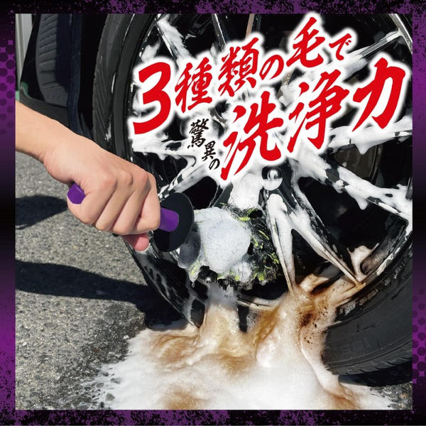 3種類の毛を混合させることによりホイールの内側に付着した細かい砂や泥汚れ等を掻き取り、しっかり落とします。