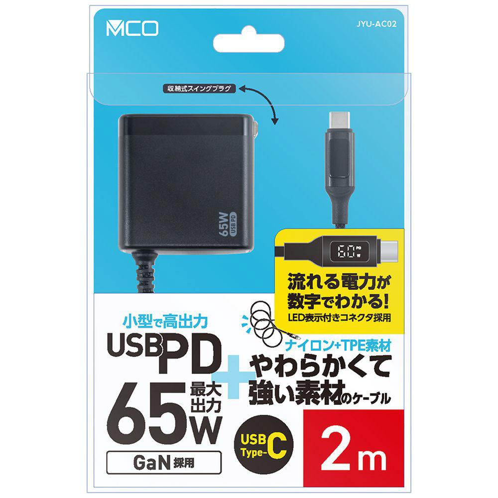 「GaN 65W PD充電器ケーブル一体型 2m」