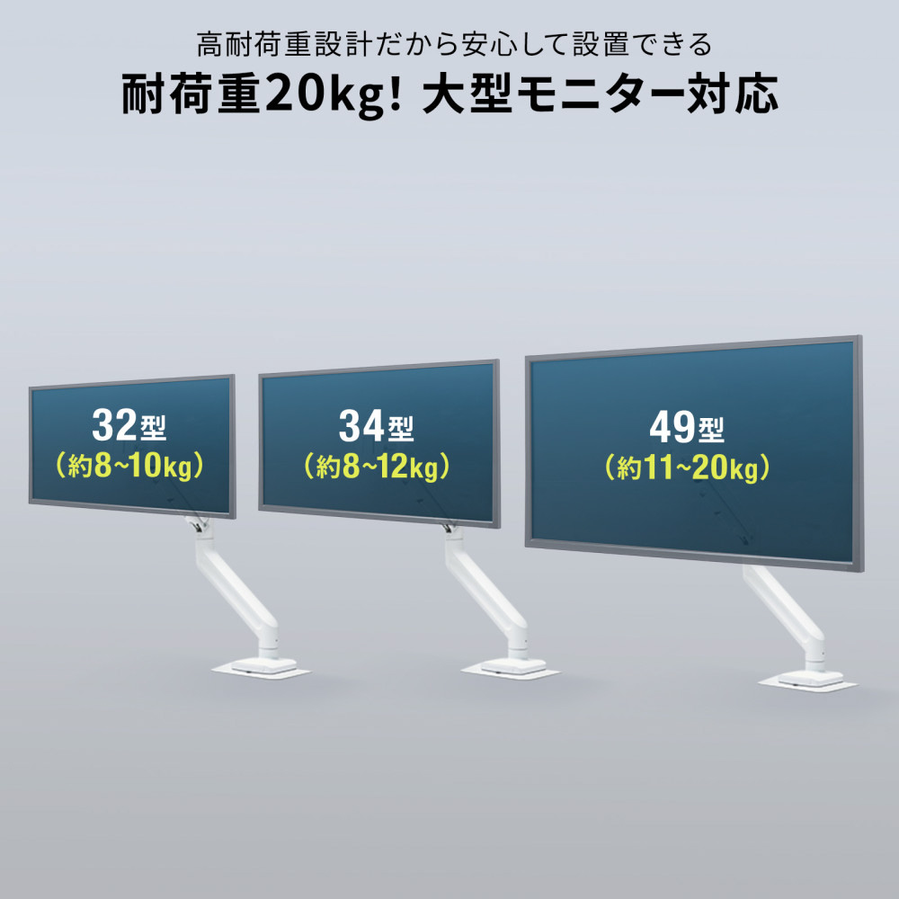 ■最大20kgまで対応する高耐荷重設計で、大型モニターにも安心して使用できます。