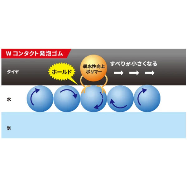 ゴムがやわらかいため氷にしっかり密着。さらに、細かい気泡が路面とタイヤの間にある水膜を除去。