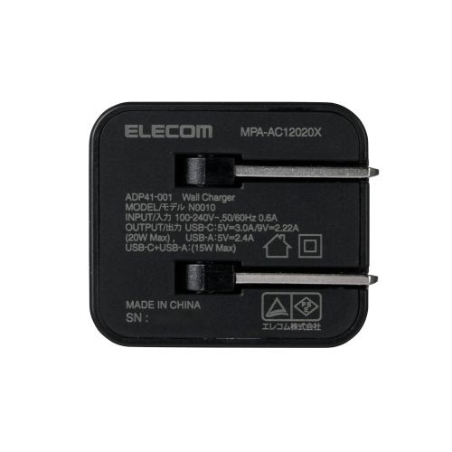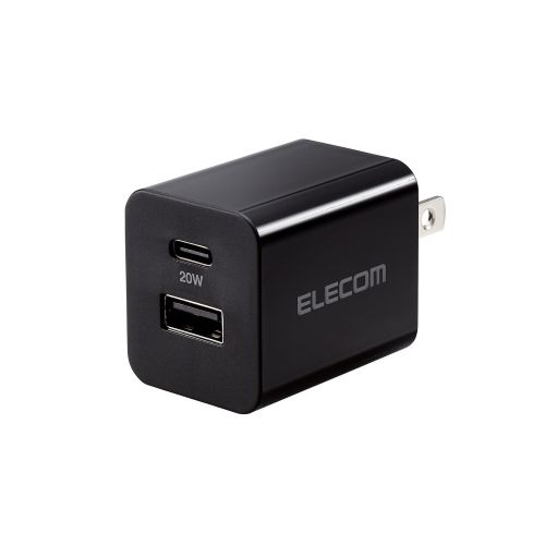 充電器 USB Type-C 20W PD対応 2ポート USB-C USB-A コンセント iPhone iPad Android 各種対応 PSE適合 折りたたみ式プラグ ブラック MPA-AC12020XBK