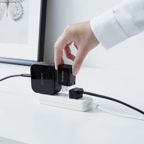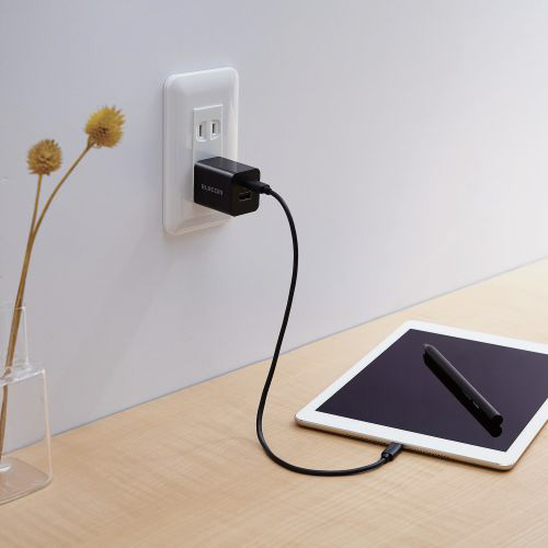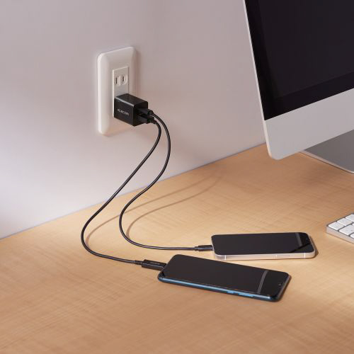 USB Type-C(TM)ポートやUSB-Aポートを搭載し、それぞれのポートに対応するスマートフォンやタブレットなどでも別々のAC充電器を用意することなく、これ1台で充電できるAC充電器です。