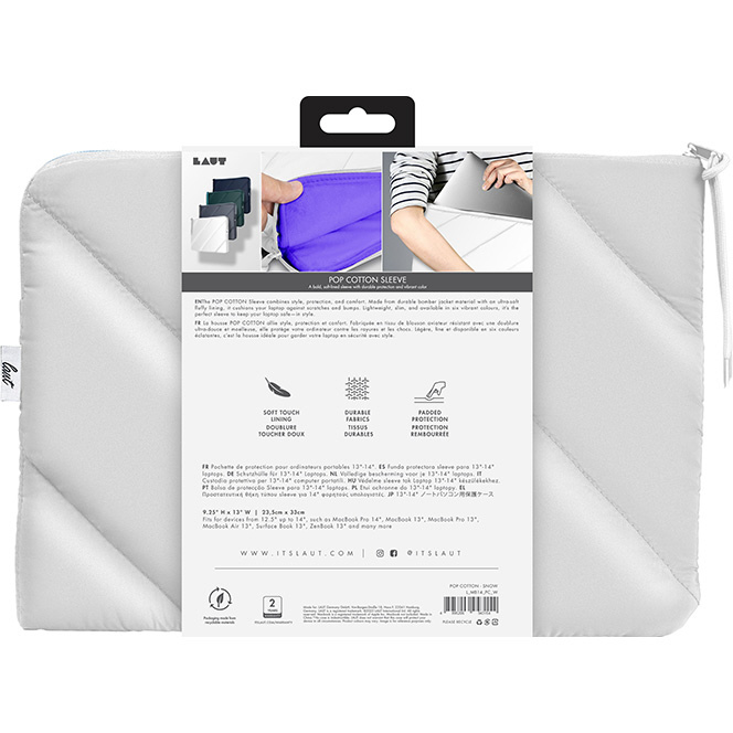 ノートパソコン対応 [13〜14インチ] ラップトップスリーブ UP TO 14 LAPTOP LAUT POP COTTON スノー L_MB14_PC_W