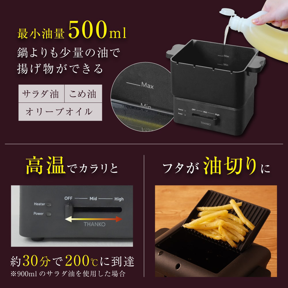 さらに鍋の底を深くすることで使用できる油量が900mlまで増加!