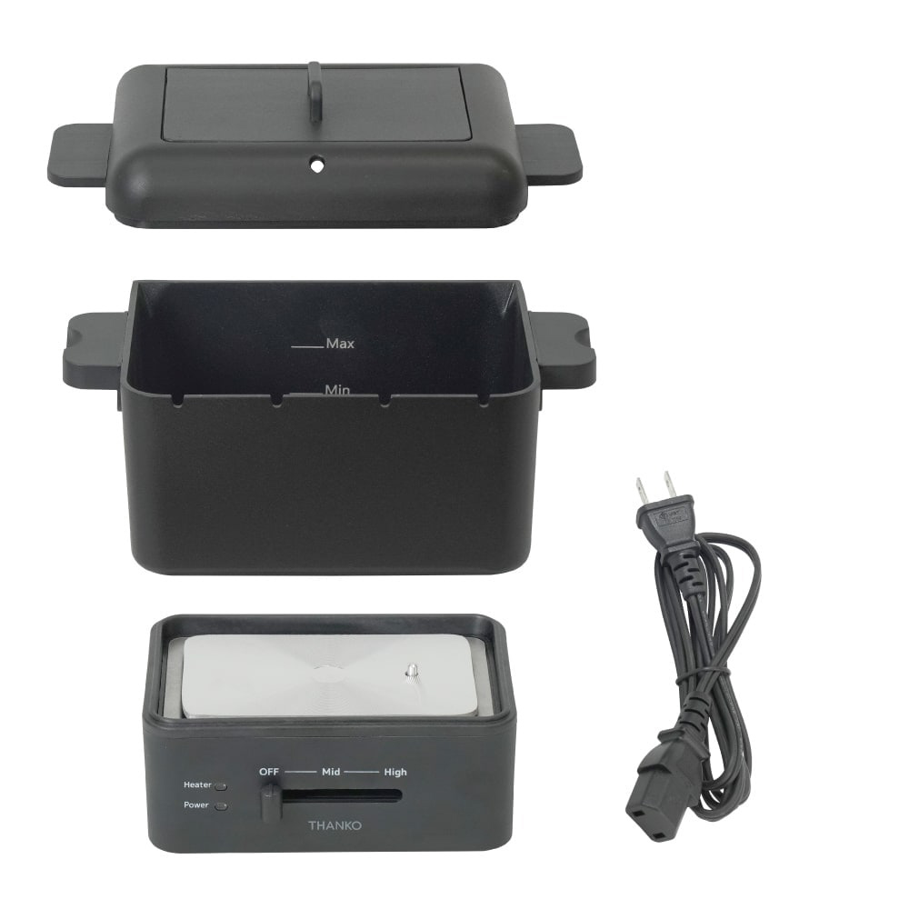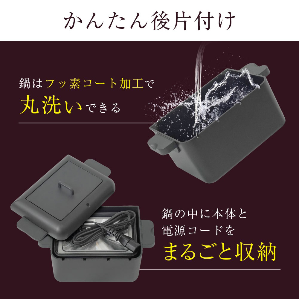 本体と電源コードは鍋の中に丸ごと収納できるので、使い終わった後も場所を取りません。